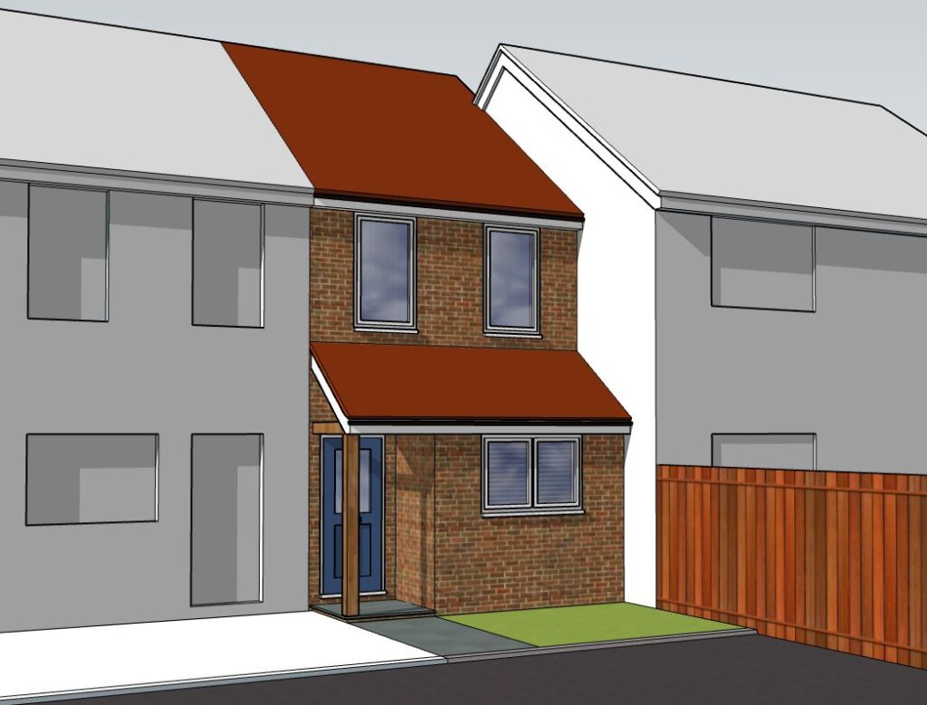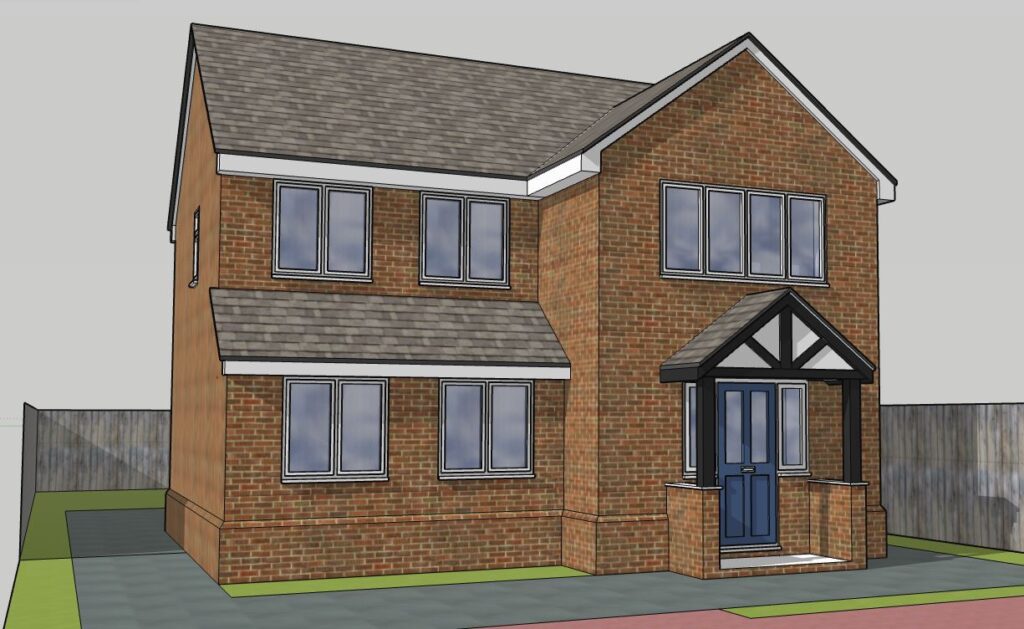 This illustration is of a 4 bed new build property where the client wanted to explore different external materials.